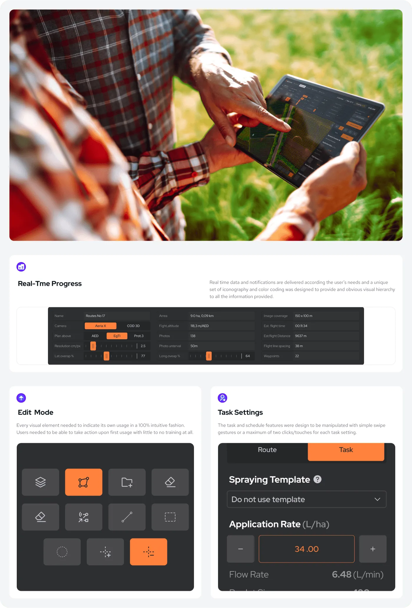 Nearly every visual element in the UX/UI delivers an actionable insight or task. The interface is as appealing as it is practical, quickly becoming the go-to tool in the shed for land managers and agricultural staff who previously relied solely on firsthand experience before drone technology transformed this vital sector of the global economy.