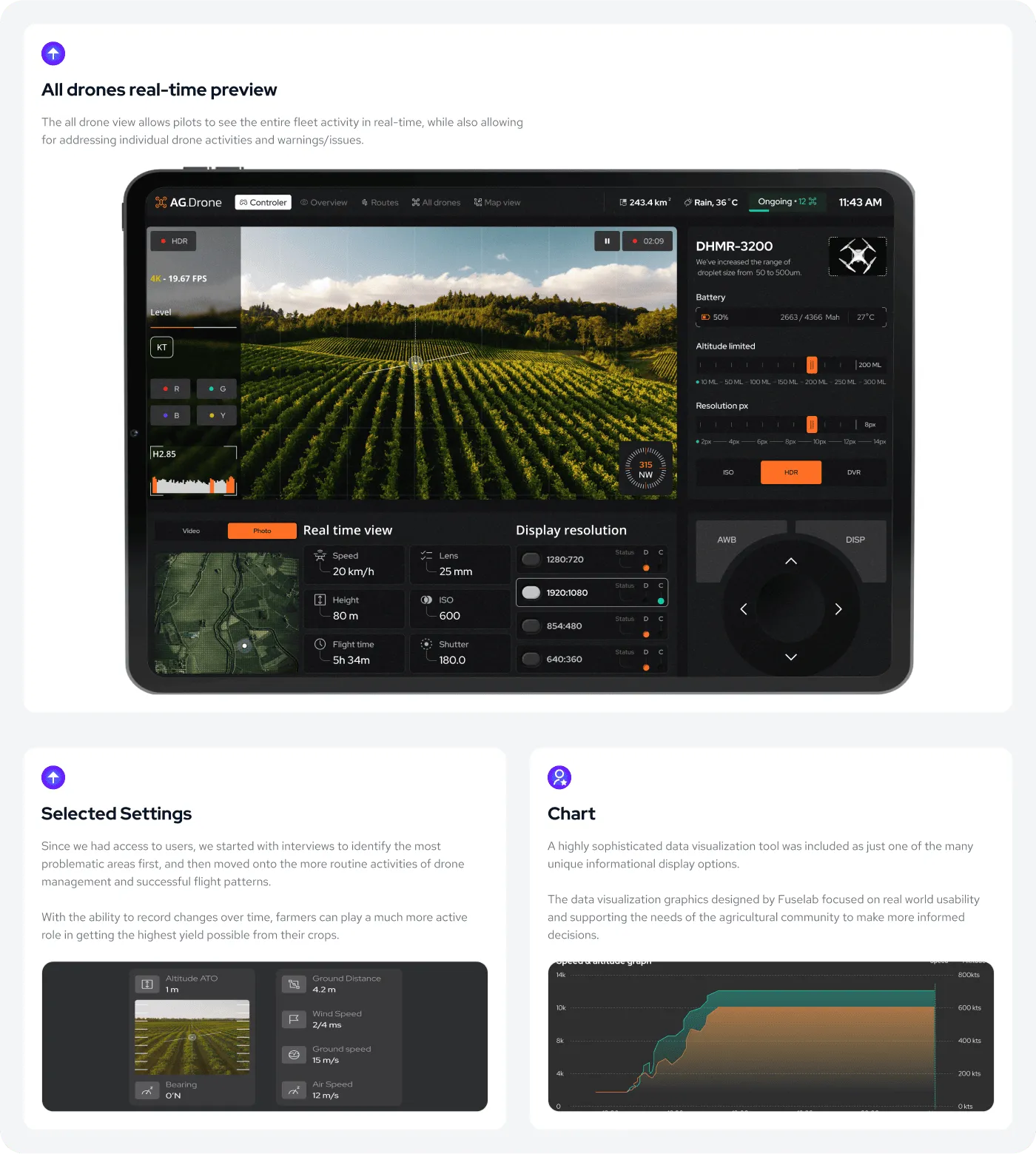 With AG.Drone, users can systematically plan land and livestock management based on weather patterns and real-time data—capabilities that were impossible just a few years ago. The UX/UI was validated through real-world testing across diverse conditions, including rain, thunderstorms, and extreme heat.