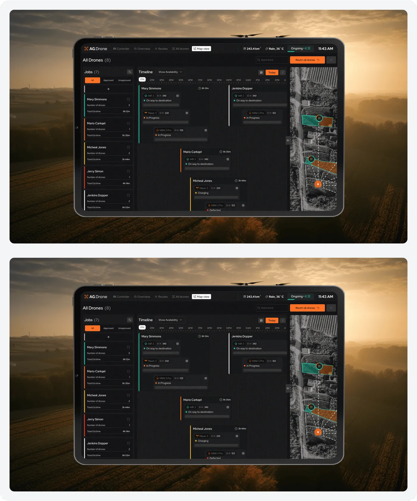 Not every user manages drones the same way. That’s why we designed multiple experience modes—such as real-time map control for individual drones and minute-by-minute timeline management.
