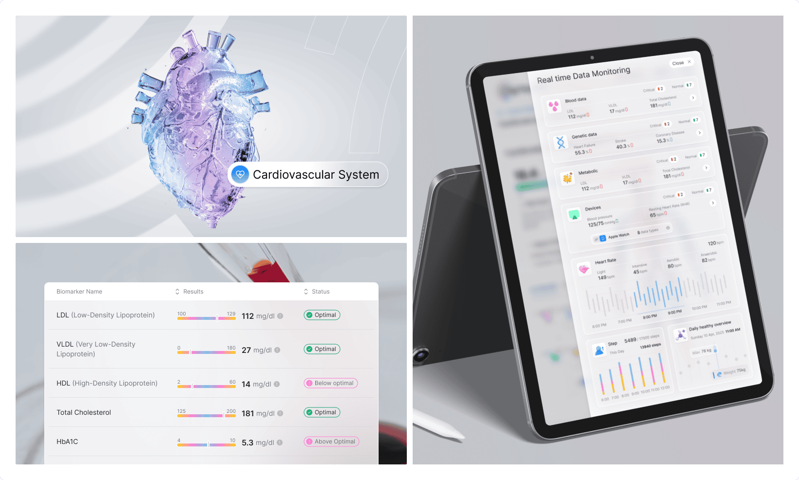 An innovative patient flow has been developed that enables users to easily upload their genetic data, lab results, and health reports to create a personalized digital twin. This virtual model reflects their body, organs, and circulatory system, providing insights into their current health status and assisting healthcare providers in predicting and addressing both present and future health concerns. By integrating wearables and health applications, we have enhanced usability through effective interface design, real-time monitoring, system-wide insights, and actionable protocols.