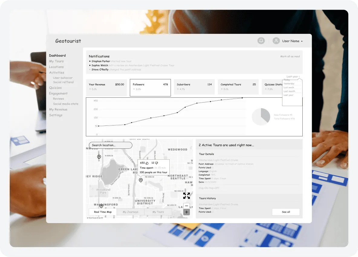 Need to update your recent published tours and delete some outdated ones, the administrative dashboard gives tour guides complete autonomy and contro over their content, allowing for a better and more refined user experience over time.