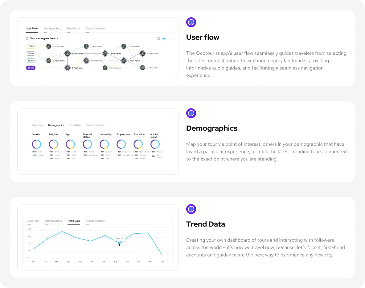 Geotourist is a unique platform that combines social networking with tourism. It enables users to connect with like-minded travelers and experience authentic, location-based guidance as they explore destinations around the world.