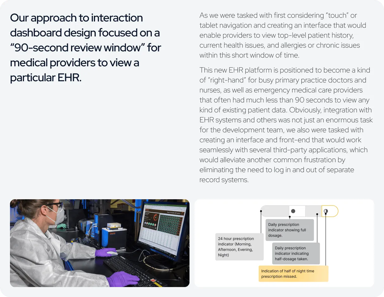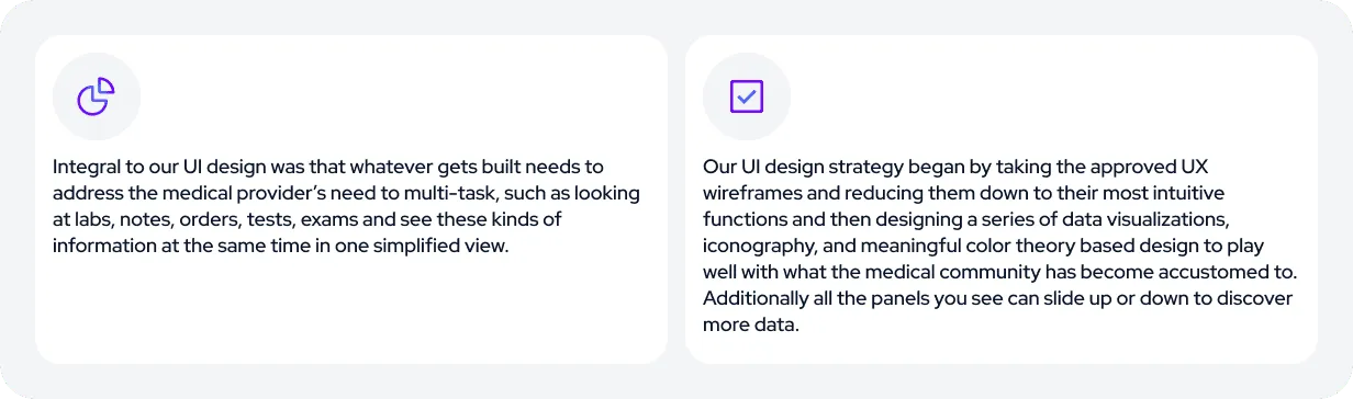 A central objective throughout this stage was to streamline the user experience by reducing the number of clicks or touches required for healthcare providers to access the information most relevant to their immediate clinical needs.