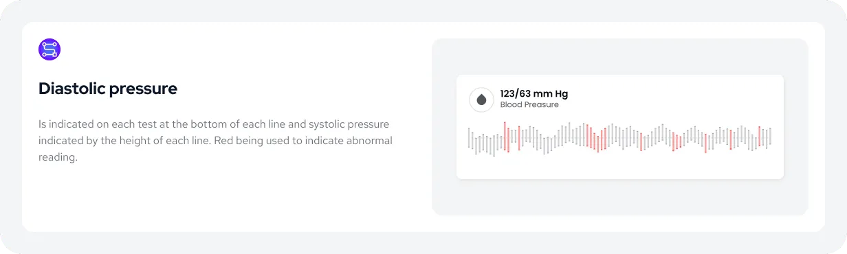 One of the most significant insights to emerge from our collaboration with the medical community was the recognition that greater data density is generally preferred. Physicians and nurses seek meaningful signals within large, complex datasets, and expressed greater confidence in their clinical decision‑making when presented with extensive information rather than distilled summaries. To accommodate this need, we developed compact yet information‑rich visualizations. For example, the blood pressure chart displays every recorded measurement over time, highlighting peak and low values, flagging abnormal readings in red, and establishing a clear baseline indicator for healthy levels across the center of the graph.